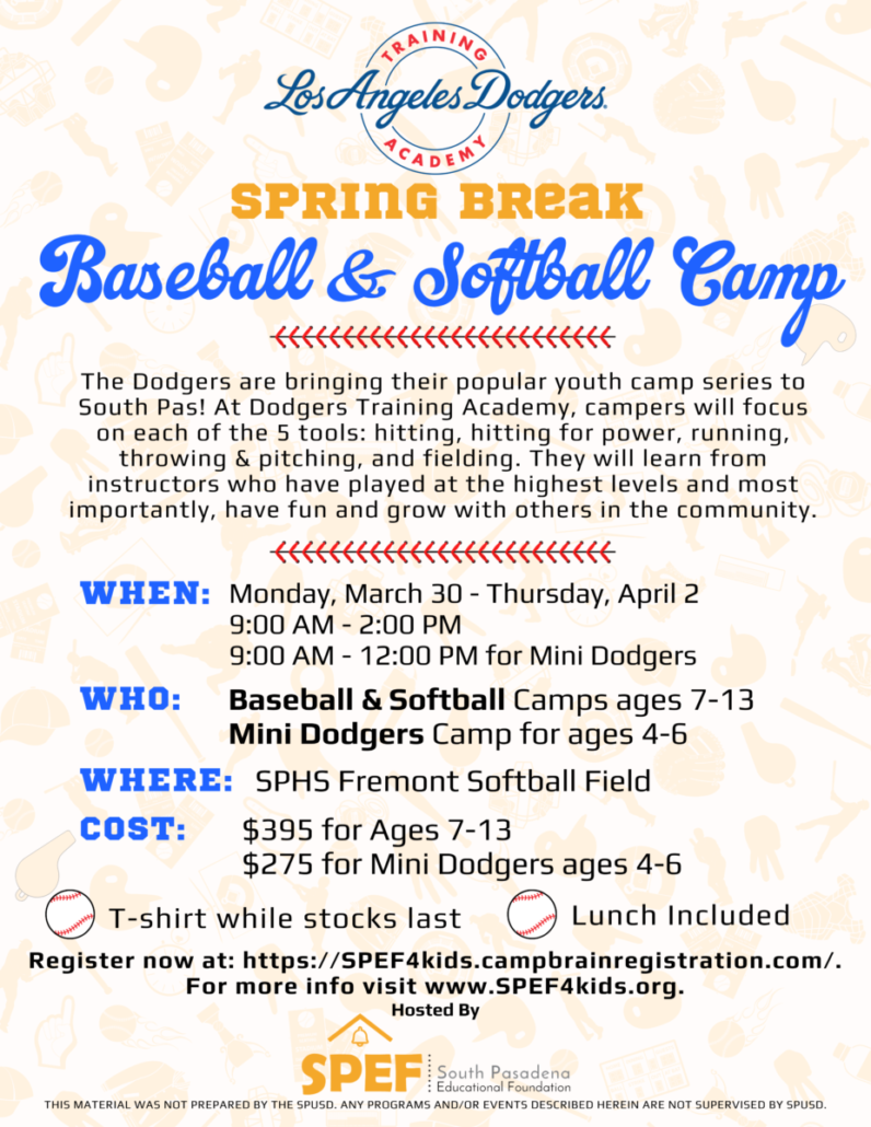 - Only current SPUSD students or South Pasadena residents are eligible.
